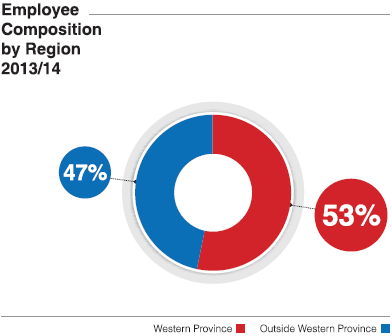 Our branch recruitment policy emphasises the selection of local candidates. By recruiting from the communities in which we operate, we gain numerous operational and financial advantages as a Company while contributing to local social and economic uplift in the most sustainable possible way. This policy also contributes to reducing youth migration to Colombo and other urban centres, a desirable social goal. A breakdown of recruitments by province, is given in the same chapter of this Report.